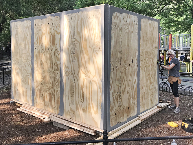 MOM - AND - POPS of the L.E.S. Birch Plywood panels being installed on Storefront sculptural installation approximating a free-standing shop: Mixed media with laminate on wood panels 12 ft. W x 9 ft. H x 8 ft. D June 2018 - July 2019 LOWER EAST SIDE, MANHATTAN PREVIOUS - NEXT INSTALLATION COMMISSIONS |