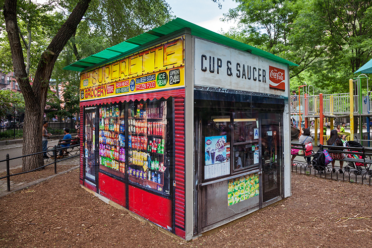 Mixed media with laminate on wood panels 12 ft. W x 9 ft. H x 8 ft. D