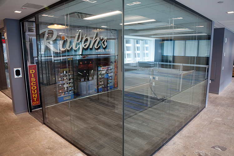 Large-scale storefront photograph at Indeed Headquarters printed on Terralon Paperback PVC-Free Coated Fabric, H 8 ft. x W 11.6 ft. (2016)
